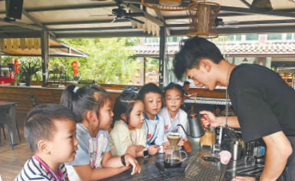 最初,與普洱市大多數(shù)咖啡莊園一樣,小凹子咖啡莊園生產(chǎn)的咖啡豆大部分用于原料供應。然而,一段時間咖啡豆的價格波動讓他開始思考轉(zhuǎn)型。“咱們這兒生態(tài)環(huán)境好,發(fā)展旅游有基礎?,F(xiàn)在人們對咖啡的興趣也不止于品嘗,我們可以試試文旅融合的路子。”廖世豪說。
