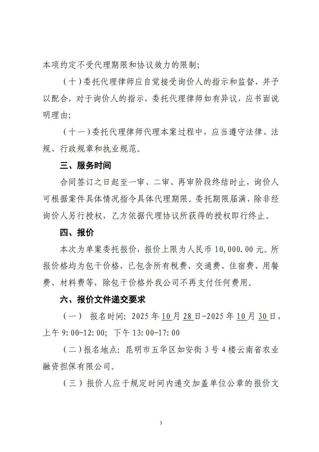 云南省農(nóng)業(yè)融資擔(dān)保有限公司詢價公告
