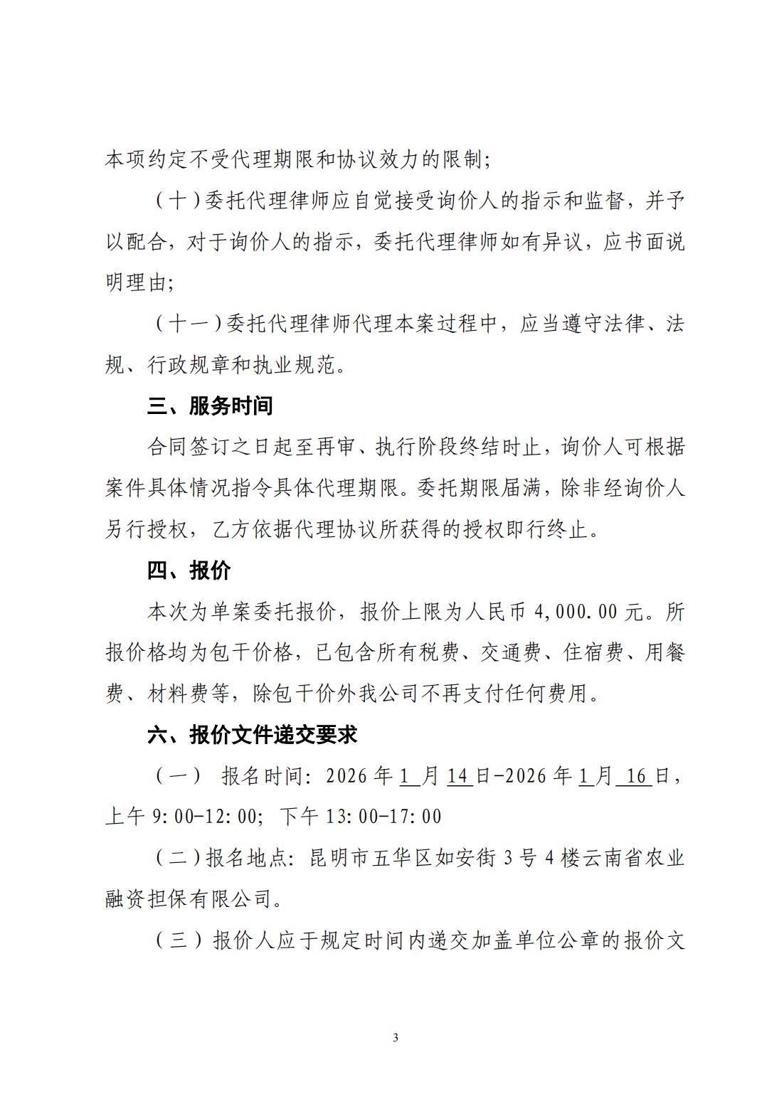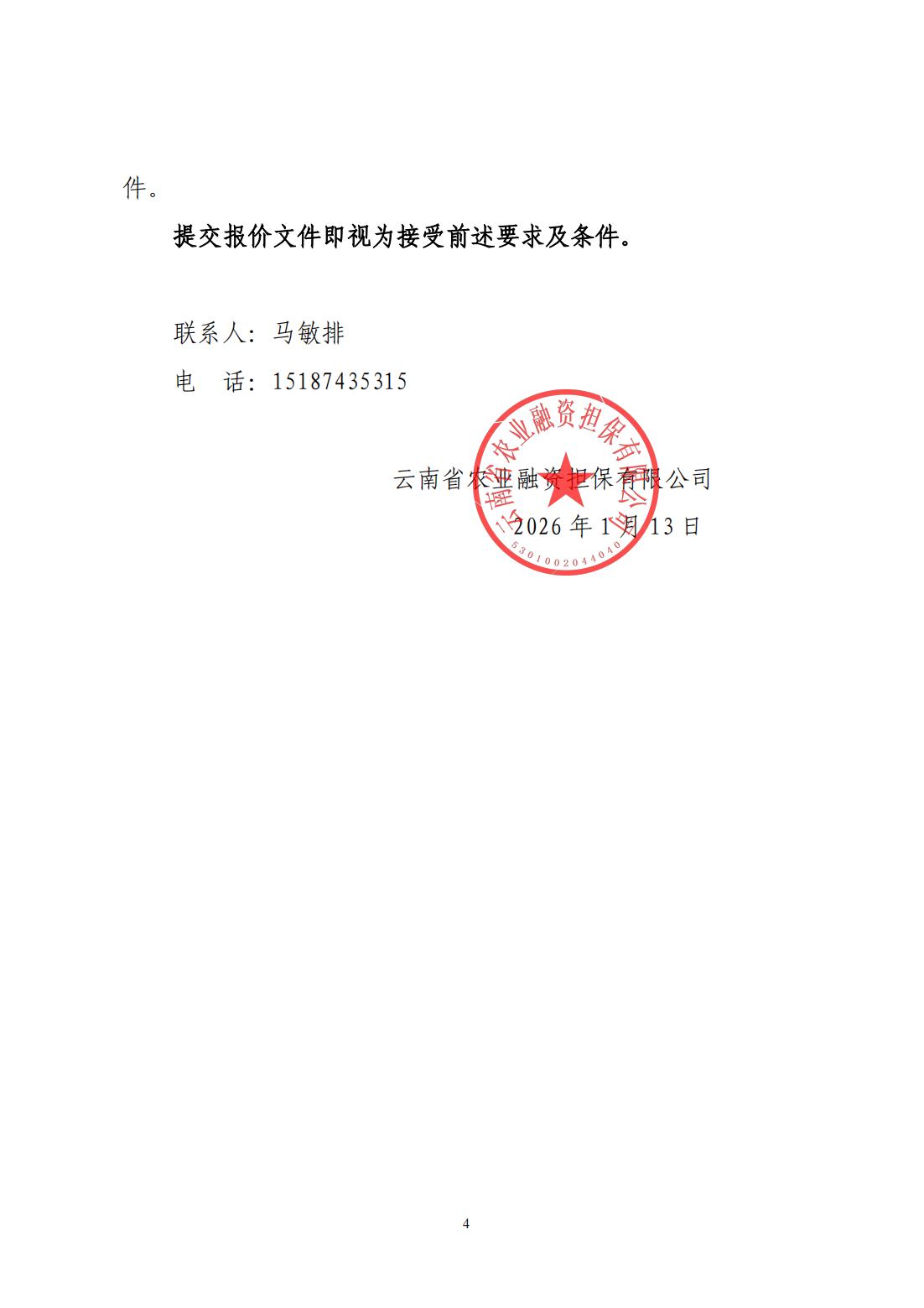 云南省農(nóng)業(yè)融資擔(dān)保有限公司詢價(jià)公告