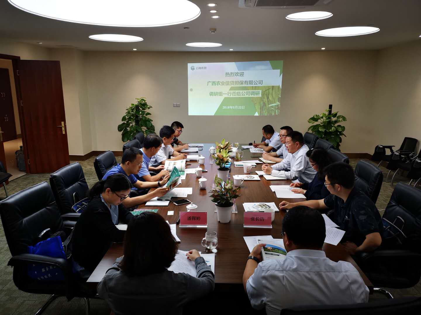 5月22日上午,廣西農(nóng)業(yè)信貸擔(dān)保有限公司到我公司進(jìn)行考察學(xué)習(xí),杜開(kāi)波總經(jīng)理、廖寅皓副總經(jīng)理率農(nóng)擔(dān)一部、二部、風(fēng)控部、人力部與廣西農(nóng)擔(dān)公司進(jìn)行了座談。座談會(huì)上,雙方就業(yè)務(wù)開(kāi)展情況、推動(dòng)業(yè)務(wù)發(fā)展的措施、體系建設(shè)、薪酬績(jī)效考核情況、政策支持等方面進(jìn)行了深入交流。