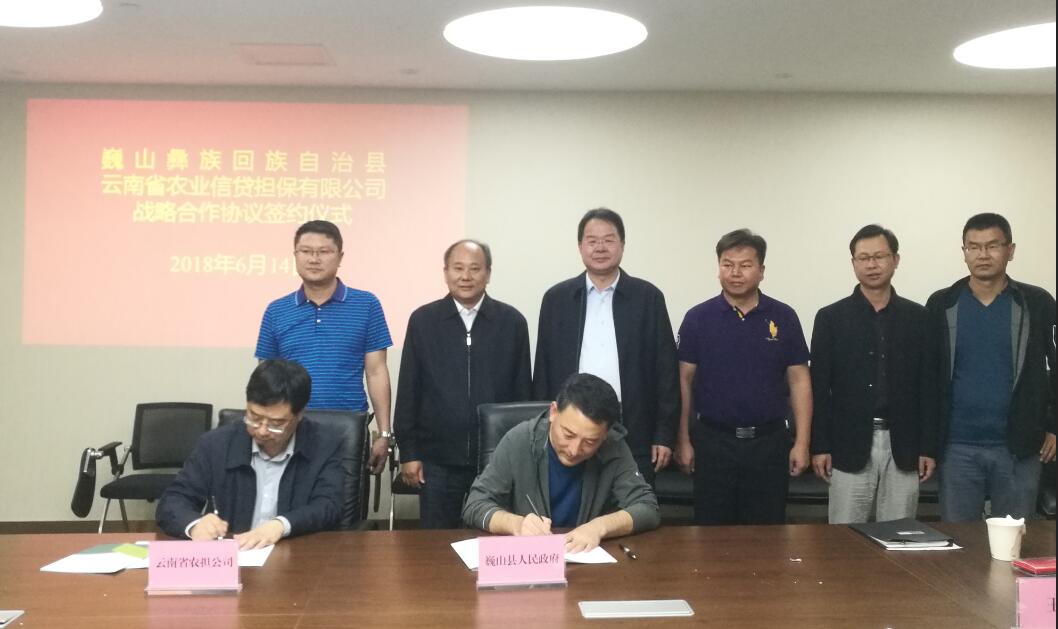6月14日上午,公司與巍山彝族回族自治縣簽訂了戰(zhàn)略合作協(xié)議。巍山縣縣委副書記、縣長王利偉率縣財(cái)政局、農(nóng)業(yè)局及巍山縣農(nóng)村商業(yè)銀行與省農(nóng)擔(dān)公司進(jìn)行座談,省農(nóng)擔(dān)公司郭影董事長、杜開波總經(jīng)理參加會議,雙方就共同推進(jìn)巍山縣農(nóng)擔(dān)工作深入交換意見。