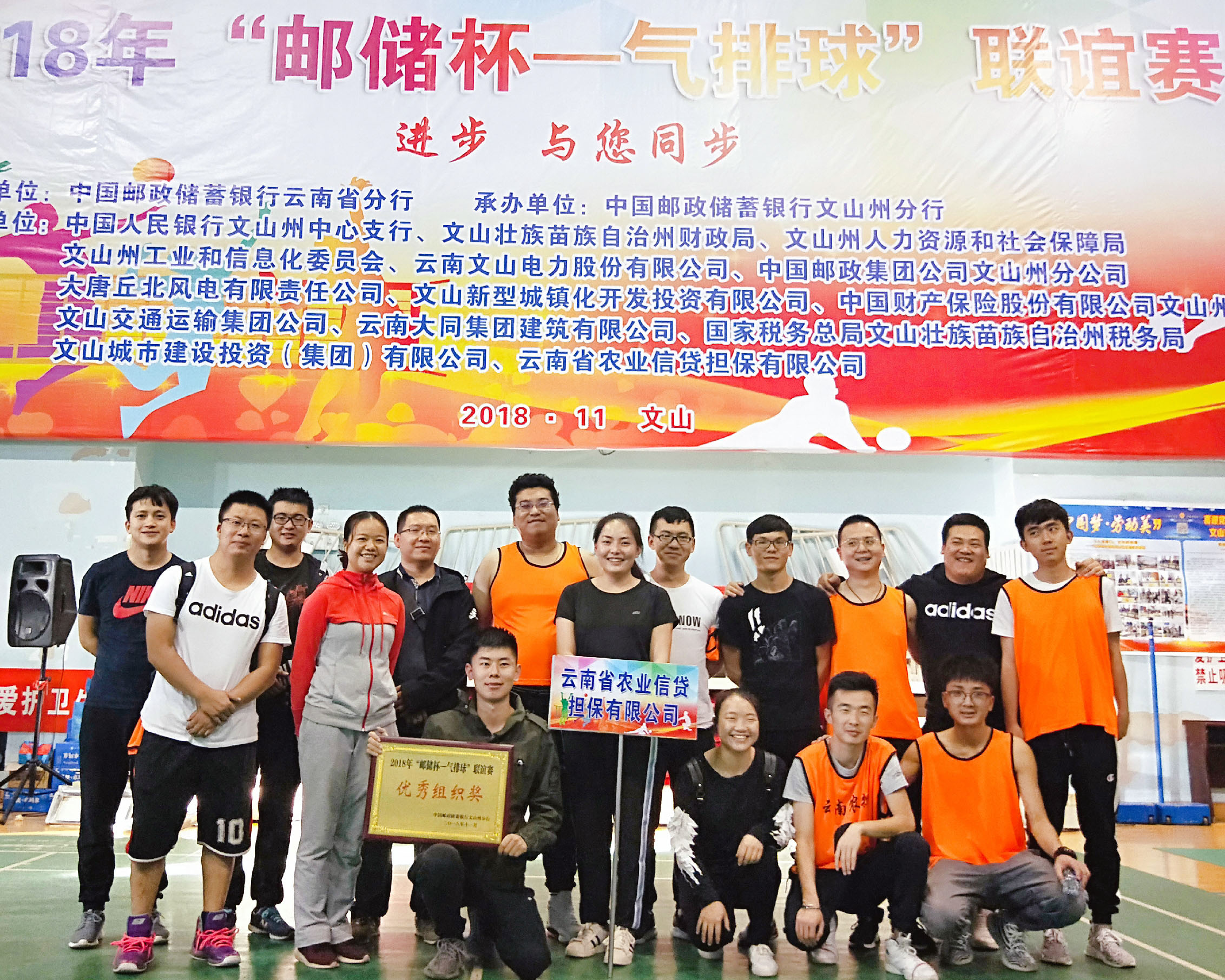 文山州“郵儲杯-氣排球”聯(lián)誼賽在各機構單位的歡聲笑語中圓滿結(jié)束,雖然農(nóng)擔公司首次參加氣排球比賽,但文山、硯山、楚雄、尋甸等辦事處員工積極參與、團結(jié)配合、用汗水和不放棄的拼搏精神為觀眾們奉獻了一場激情四射的比賽!云南農(nóng)擔此次賽出了風格,賽出了水平,光榮獲得了由郵儲銀行文山州分行領導頒發(fā)的優(yōu)秀獎。本次聯(lián)誼賽在和諧歡快的氛圍中落下帷幕,農(nóng)擔公司文明參賽的體育精神獲得了其余15家單位一致認可及肯定,并對我公司禮儀規(guī)范的參賽風范做出了高度評價。