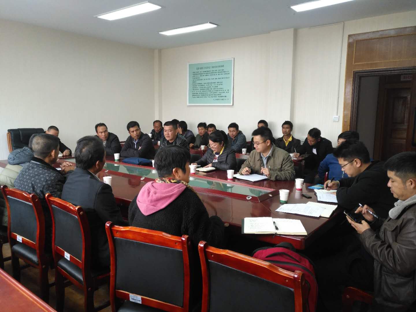 2019年1月9日,普洱辦事處工作人員戴維、王真與孟連縣30家咖啡企業(yè)座談交流, 孟連縣副縣長(zhǎng)戴國(guó)強(qiáng)、孟連縣財(cái)政局黨委書記魏瑋、孟連縣茶特局局長(zhǎng)李相裝參加座談會(huì)。
