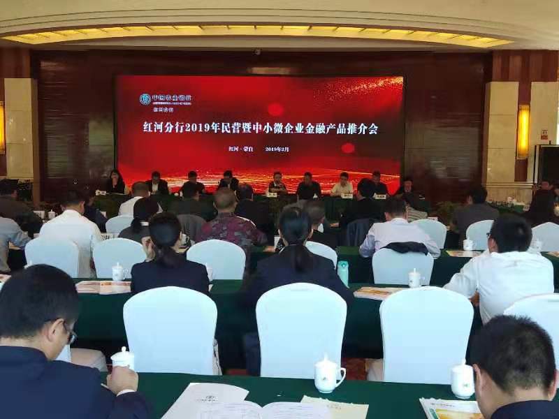 2019年2月26日下午,紅河辦事處應邀參加了農(nóng)行紅河州分行舉辦的“2019年民營暨中小微企業(yè)金融產(chǎn)品推介會”,參會人員及單位有農(nóng)行紅河州分行行長朱旭鵬、副行長楊增偉、紅河銀監(jiān)分局、州人行信貸科、州工商聯(lián)、州工信委中小企業(yè)科、全州35家中小微企業(yè)代表、農(nóng)行各支行副行長及業(yè)務骨干。
