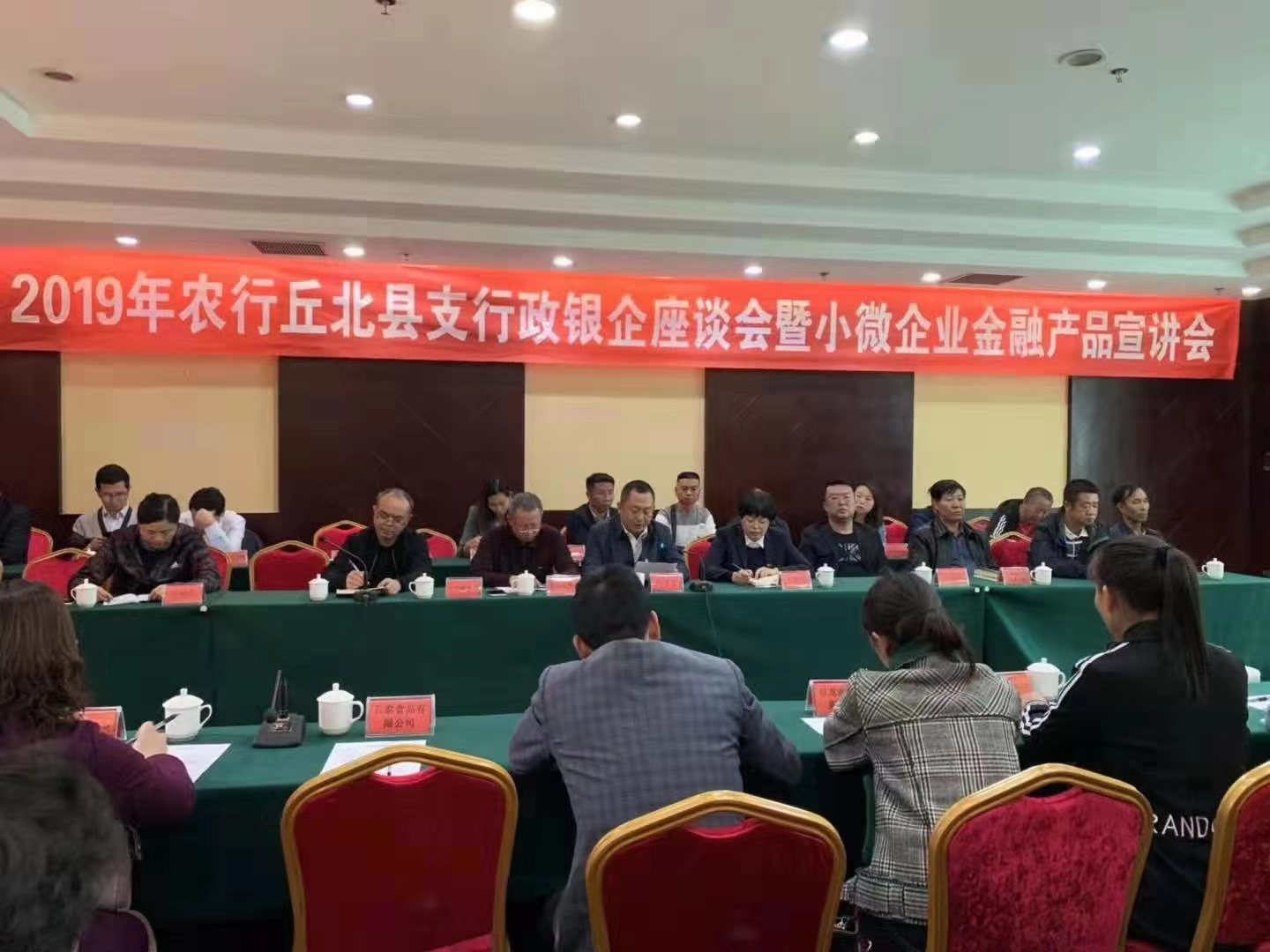 3月1日下午,農(nóng)擔公司文山辦事處受邀參加農(nóng)行丘北縣支行舉辦的2019年丘北縣政銀企座談會,參會人員有丘北縣副縣長楊文才,縣人民銀行、工信商務局、農(nóng)科局、金融辦等政府職能部門及丘北縣部分民營企業(yè)、農(nóng)民專業(yè)合作社。