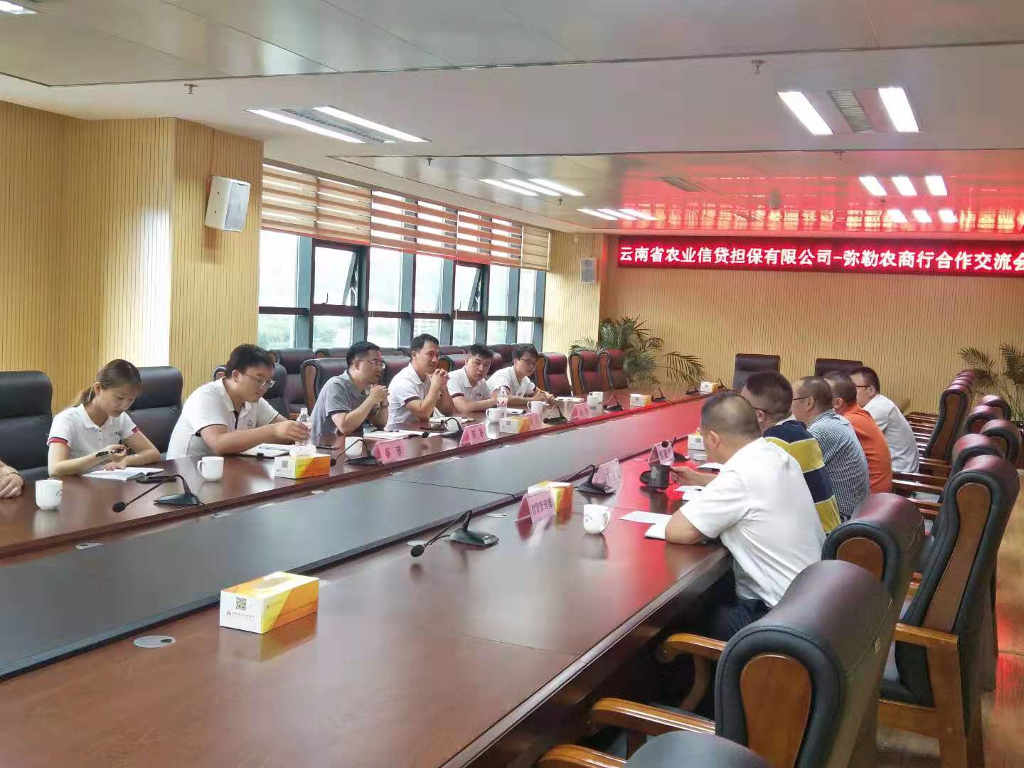 彌勒農(nóng)商行董事長(zhǎng)曹繼輝對(duì)農(nóng)擔(dān)公司的到來(lái)表示熱烈歡迎,詳細(xì)匯報(bào)了彌勒農(nóng)商行當(dāng)前業(yè)務(wù)規(guī)模,與我公司的業(yè)務(wù)開(kāi)展情況,以及與我公司在業(yè)務(wù)開(kāi)展過(guò)程中遇到的問(wèn)題,提出當(dāng)前與我司在合作金額、合作方式上的需求。