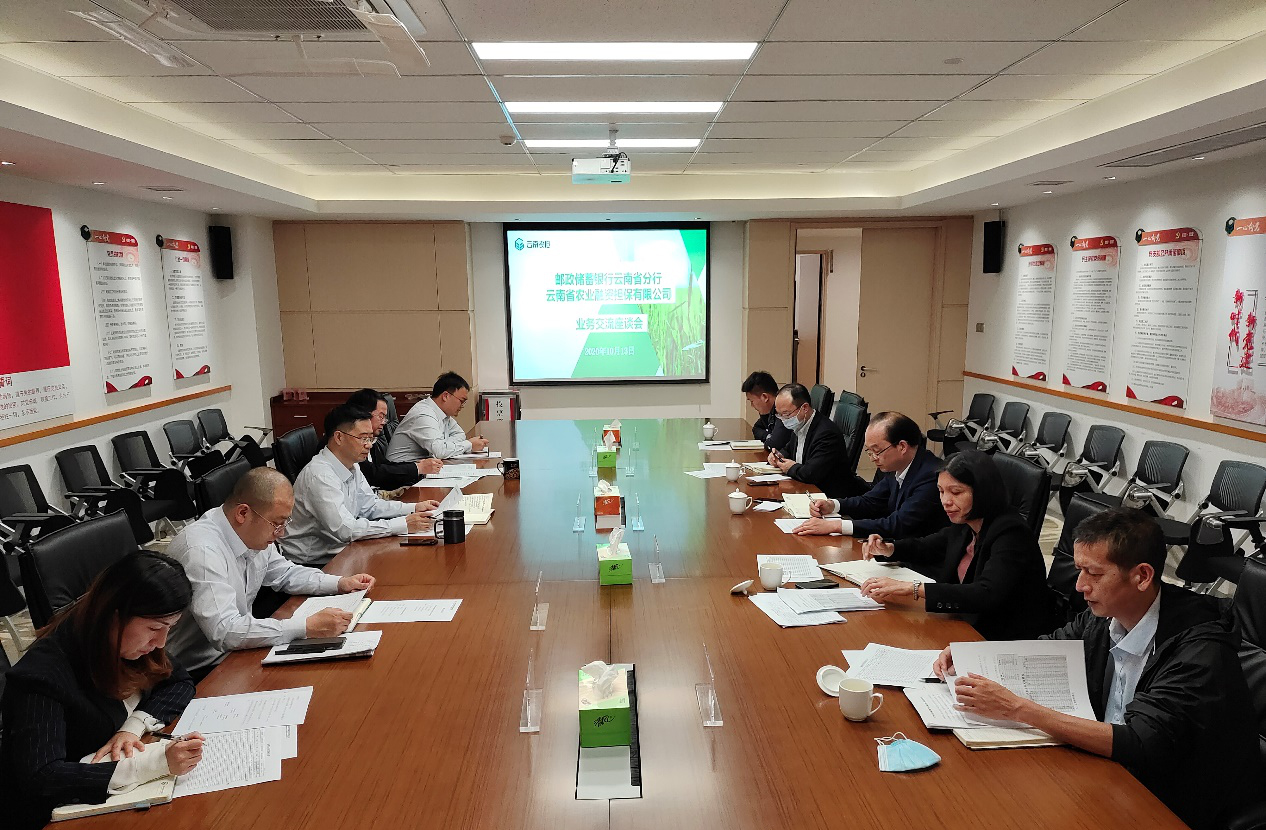 10月13日,云南省農(nóng)業(yè)融資擔(dān)保有限公司與郵政儲蓄銀行云南省分行召開業(yè)務(wù)交流座談會。郵儲銀行云南省分行孟浩副行長、云南省農(nóng)擔(dān)公司郭影董事長、杜開波總經(jīng)理出席了會議。郵儲銀行三農(nóng)金融部、小企業(yè)金融部,省農(nóng)擔(dān)公司風(fēng)險控制(資產(chǎn)保全)部、農(nóng)擔(dān)二部、戰(zhàn)略發(fā)展部參加了會議。