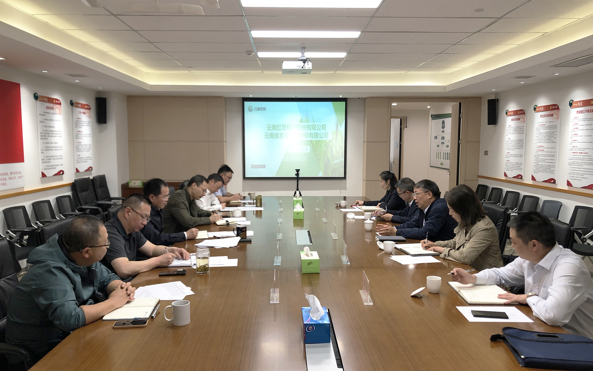 3月22日,云南農(nóng)擔與紅塔銀行召開銀擔合作座談會。紅塔銀行行長張振民、行長助理張繼、風險管理部、普惠金融業(yè)務(wù)部,公司董事長杜開波、總經(jīng)理李世偉、副總經(jīng)理廖寅皓、副總經(jīng)理梁威、業(yè)務(wù)發(fā)展部及戰(zhàn)略發(fā)展部參加會議。雙方就現(xiàn)階段戰(zhàn)略合作有關(guān)事宜進行深入交流并達成共識。