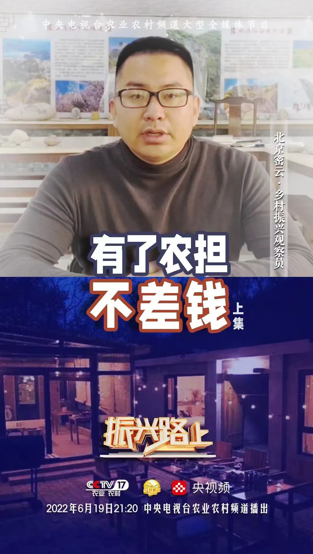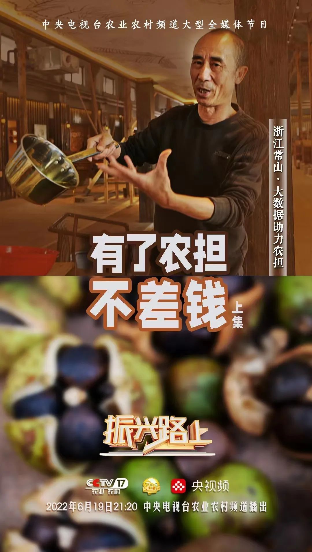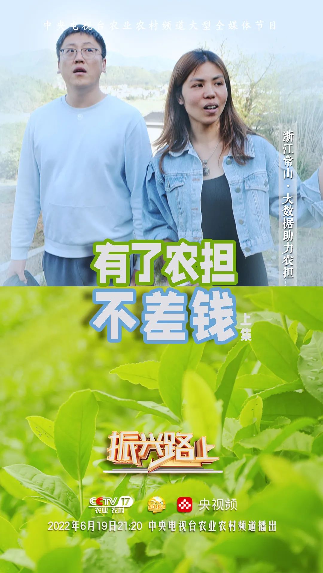 在農(nóng)業(yè)農(nóng)村部計劃財務(wù)司的指導(dǎo)下,由中央廣播電視總臺農(nóng)業(yè)農(nóng)村頻道(CCTV-17)大型全媒體欄目《振興路上》與國家農(nóng)擔(dān)公司特別策劃《有了農(nóng)擔(dān)不差錢》(上下集),歷經(jīng)4個月精心策劃、跨越八省實地拍攝、后期剪輯與制作工作,現(xiàn)將分別于6月19日與6月26日21:20在CCTV-17農(nóng)業(yè)農(nóng)村頻道與央視頻同步播出,屆時將讓全國觀眾認(rèn)識不一樣的農(nóng)擔(dān)人、感受“兩腳泥、曬黑臉、睡地板”的農(nóng)擔(dān)精神。