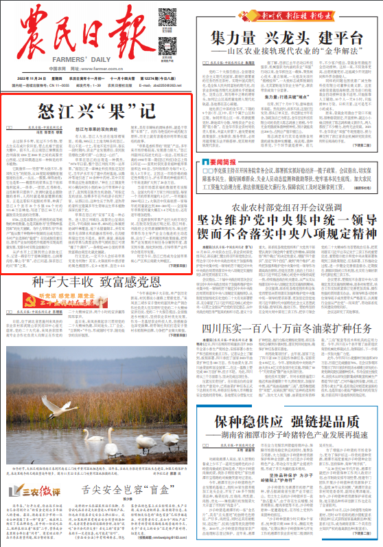 《農民日報》頭版頭條刊文