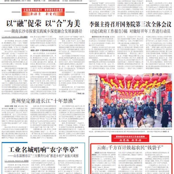 2月19日,《農(nóng)民日報(bào)》頭版刊文,聚焦云南夯實(shí)農(nóng)民增收的基礎(chǔ),千方百計(jì)鼓起農(nóng)民“錢袋子”。