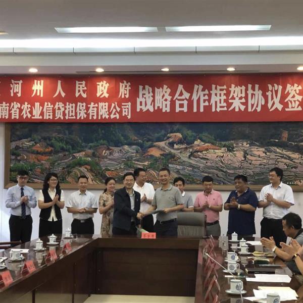 8月21日上午云南省農(nóng)業(yè)信貸擔(dān)保有限公司與紅河州人民政府戰(zhàn)略合作協(xié)議簽訂暨公司紅河辦事處、彌勒辦事處授牌儀式在紅河州會(huì)堂正式舉行。