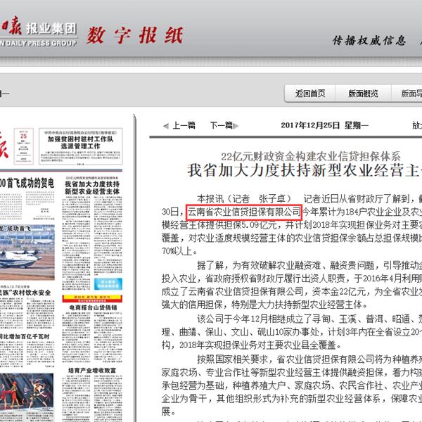 云南省加大力度扶持新型農(nóng)業(yè)經(jīng)營主體 22億元財政資金構(gòu)建農(nóng)業(yè)信貸擔保體系
