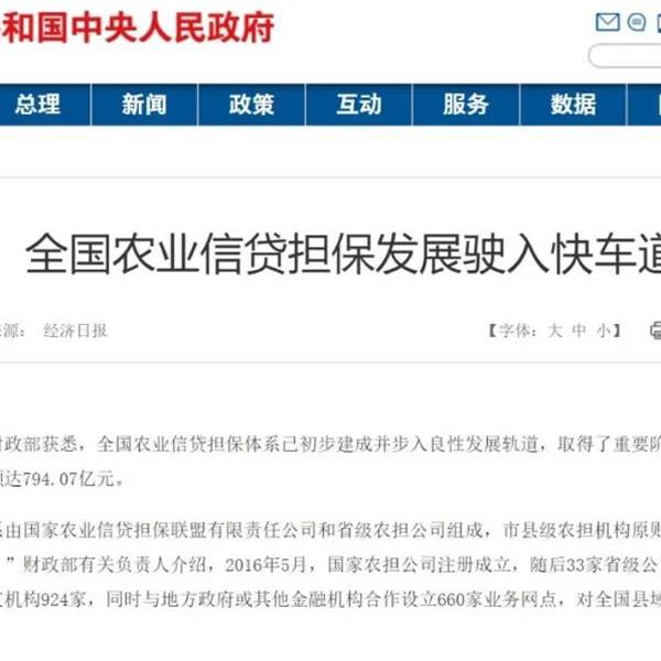 全國農(nóng)業(yè)信貸擔保體系已初步建成并步入良性發(fā)展軌道,取得了重要階段性成效。目前,全國農(nóng)擔體系資本金總額達794.07億元。